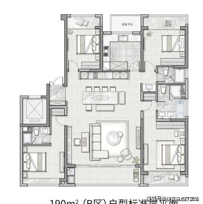 190㎡户型是经典的奢阔大平层规制,采用了经典的四叶草格局,中西双厨、南向双套房设计,高功能空间,充分满足互不打扰的精致生活;约6.45米大面宽客厅连接观景阳台,厨房、餐厅、客厅和阳台组成超大中心互动区,尽显尊贵,给生活更多的可能.