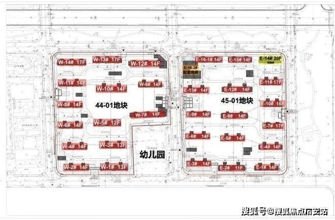 根据规划方案显示,44-01地块未来将会建设14栋12-17层的高层;45-01地块拟建16栋11-17层高层住宅,其中E-14#为保障房。
