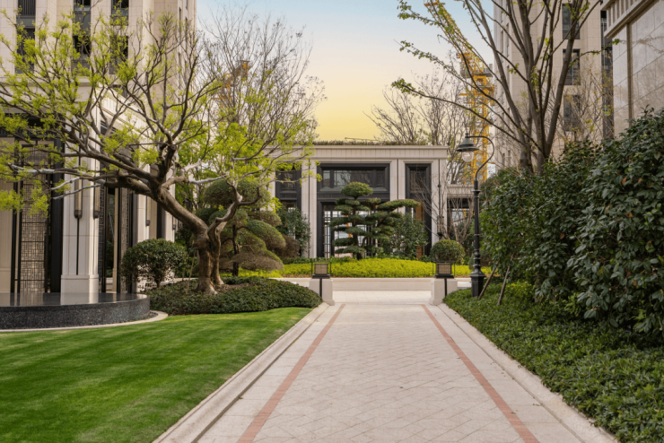 配上门前橄榄树,两侧对称布局的小叶冬青,奢华感扑面而来。要知道宝华所选的树种都是悉心培育后才移植铺陈,对植被的高度、胸径、冠幅都有严格要求,整冠移植的成本也是相当的高。这种不惜成本只为打造高品质的做法,真的很难被超越!