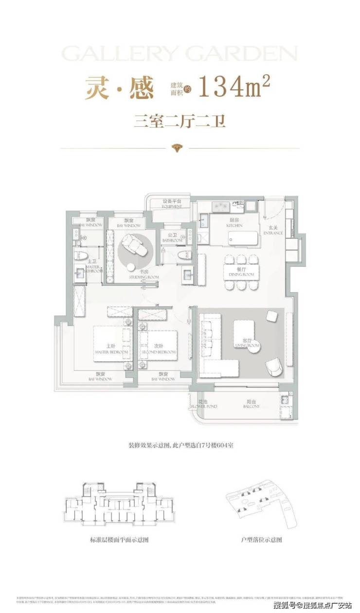 建面约134㎡3房2厅2卫,主力总价约1500-1700万,户型设计在上一个户型的基础上将各功能间尺度升级的同时,也做了一些更人性化的迭新。
