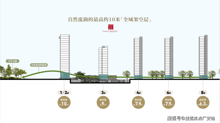 向内,项目更是以令人惊叹的魄力,打造了约6.3-10米超高层级全域架空设计。