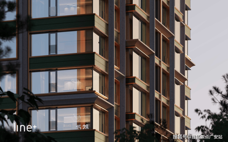 穿过归家大堂,最好看的界面来了,建筑立面的恢弘气势令人心生敬畏。会所架空层巧妙融入海派拱券设计,彰显家族的深厚底蕴与不凡气度。青绿釉陶板与仿石铝板、大面积玻璃的匠心组合,实现了东方神韵与全球视野的完美交融。弧形窗角与扇形窗套的精湛工艺一览无余,辅以精致的香槟金型材线条勾勒,赋予建筑独特的收藏价值与艺术魅力。