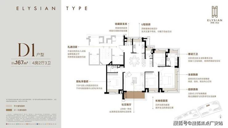 每个户型至少6个飘窗,边套更是约270°转角瞰景。