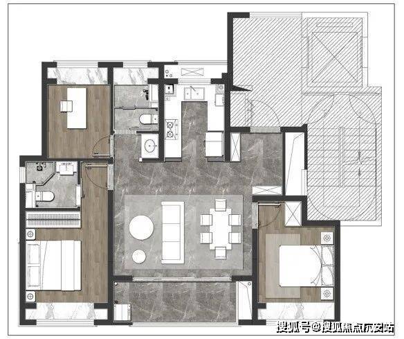 整体规划层数南低北高,北侧沿街布置商业,形成国际住区合理化布局,提供居民生活的便利性和品质感;中轴对称的景观大花园布局,融合简约现代的立面风格,兼具实用性于美观性,让森系生活的景观价值最大化。