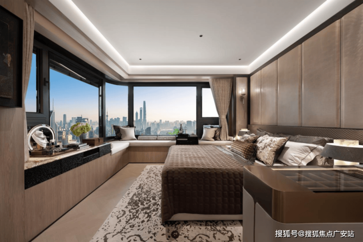越秀·静安天玥项目142㎡主卧以270°大面宽弧形窗将百年静安与社区园林“双景致”收入囊中,且采用造价高出普通窗体40%的三玻两腔Low-e玻璃,噪音分贝降至28dB以下。当百年静安的光影在窗前流动,城市封面的印记愈加显著。
