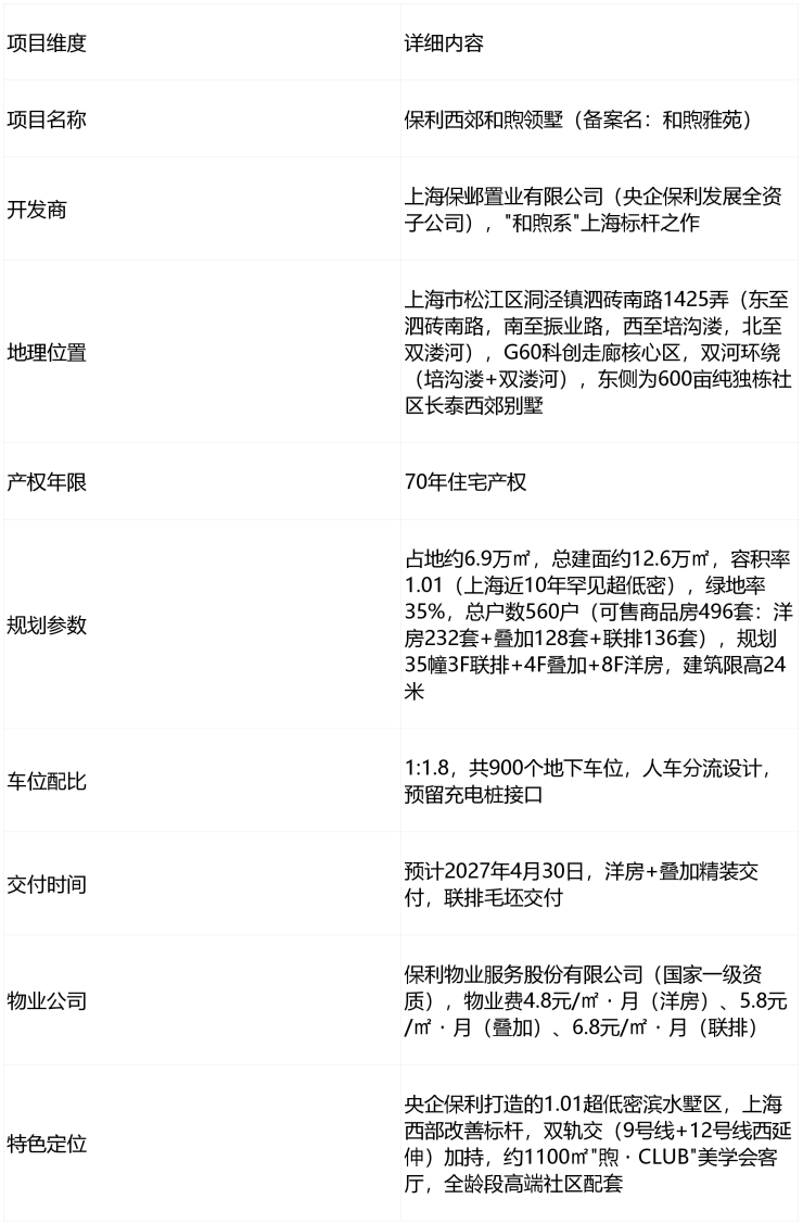 高端基因传承:保利 "和煦系" 高端产品线,领墅作为升级之作,打造上海罕见的1.01 容积率纯低密墅区,传承高端市场验证的产品哲学