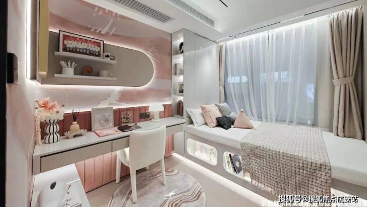值得一提的是,市面上大部分100㎡横厅户型多少会牺牲北向房间的尺度。而项目 北向房间面宽约2.8米, 搭配飘窗的设计,完全可以满足卧室的功能使用。