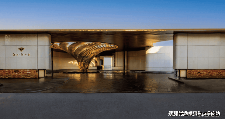 在门庭外,辅以两侧具有仪式感的跳泉水景,将建筑的圆弧美感与自然水景相合,共同构成海上·清和玺“贵雅清和”的城市界面。