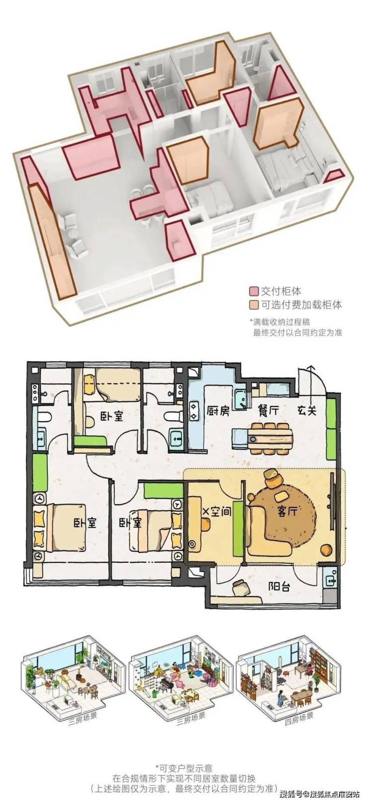 可变户型:以全户型全周期可变满足长期居住需求,与家庭共生长