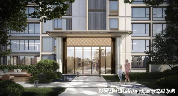 在建筑立面上,通透玻璃幕墙叠加铝板,缔就钻感镜幕墙,「江湾之钻」钻感面屏+大窗墙比,地标艺术美学,境启全新奢宅风尚。营造约60m尺度奢阔归家门庭,通过奢石、铝板、水景、弧线等精妙组合,成就江湾显赫的府邸门面,礼遇每一次的世界归来。