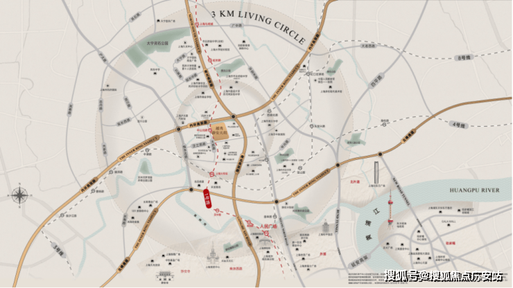 直线距离约3km内到外滩、人民广场、陆家嘴,约4km直线距离到新天地等,是中兴路板块最为明显的优势!