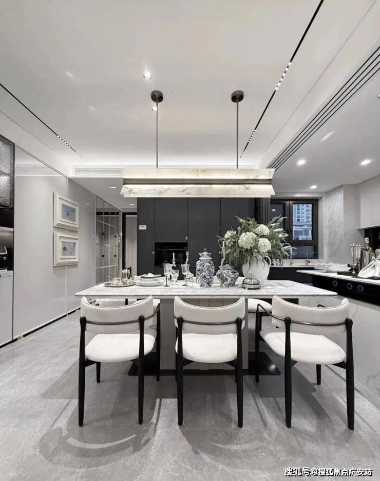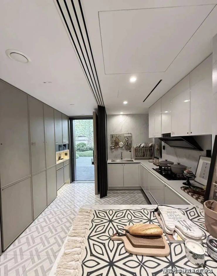 比如,厨房配了珍珠白吊柜、三组抽屉式拉篮合理搭配,调料架收纳、大容量踢脚抽、清洁用品收纳区,米面粮油、碗碟刀叉都可完美隐身。