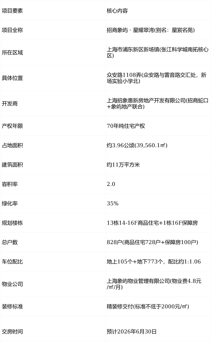 招商象屿·星耀翠湾占据大张江南部重要地段+浦东中部黄金位置,总价约300万级,且是清一色高配精工房!