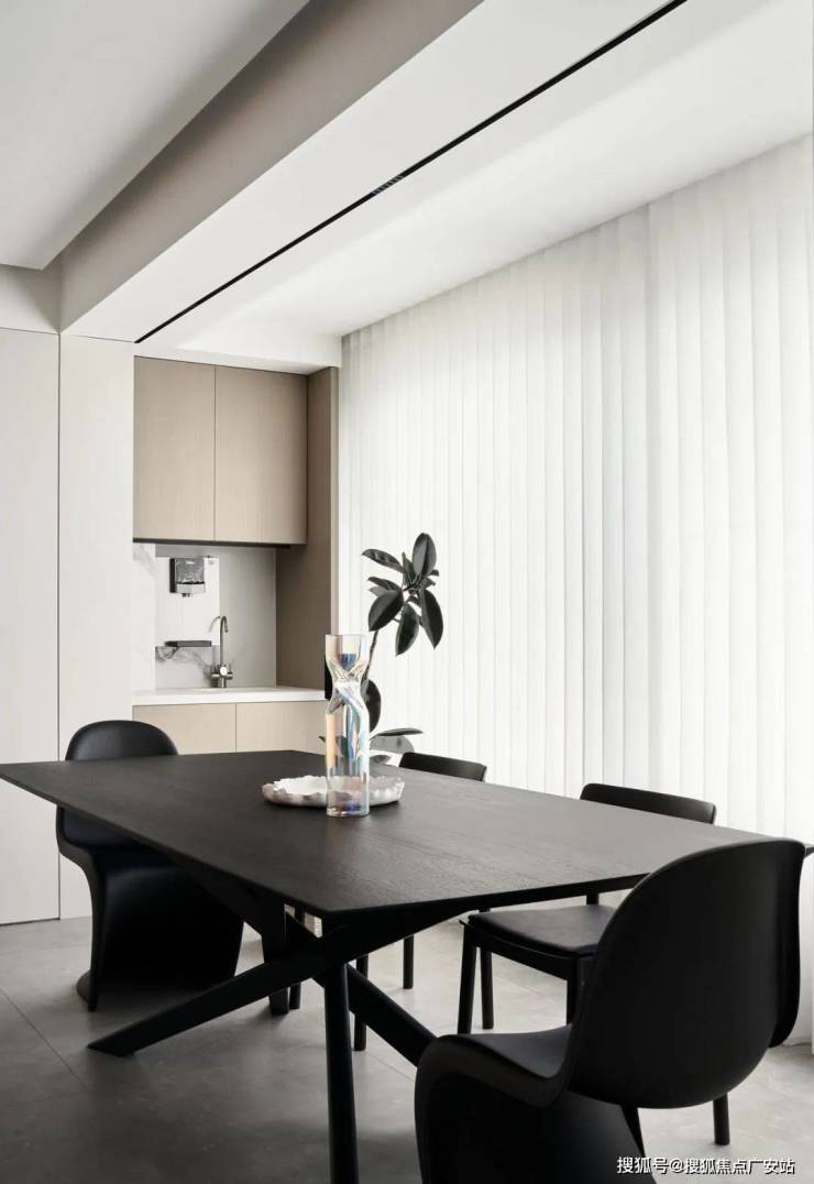 ▲ 平时就餐则在小圆桌进行,厨房采用吊轨玻璃移门隔断,不留卫生死角
