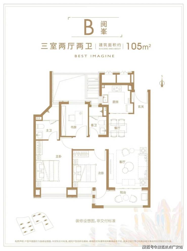 首先,3房2厅2卫的户型结构,保证了从二人世界到三胎家庭的全生命周期需求。