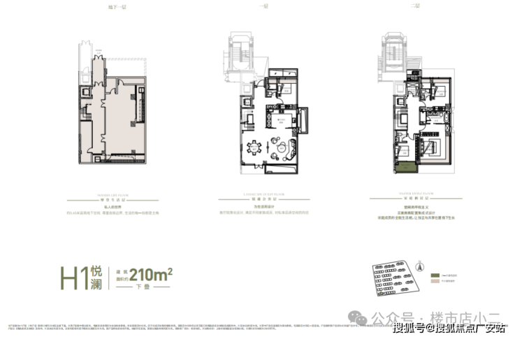 建面约182㎡ 下 叠 :庭 院+地下室(含夹层)+阳台的整体 附赠空间约210㎡ ;