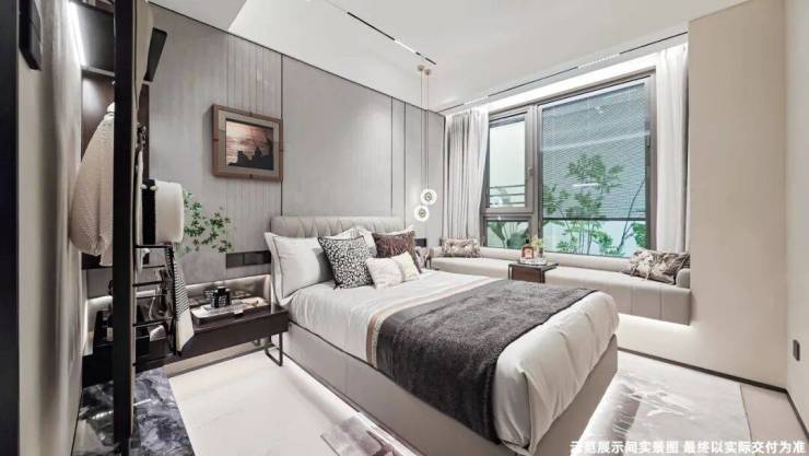 值得一提的是,市面上大部分100㎡横厅户型多少会牺牲北向房间的尺度。而项目北向房间面宽约2.8米,搭配飘窗的设计,完全可以满足卧室的功能使用。