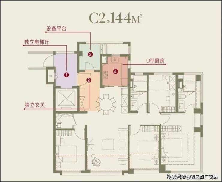 南向面宽达13.4m,四开间朝南,全卧超南。实得率超95%,多了20平空间,三阳台,满飘窗,设备平台,主卧室270°套间设计。层高3.15米。这个户型对比样板房,储藏间更大了,玄关收纳空间更大,收纳空间更多