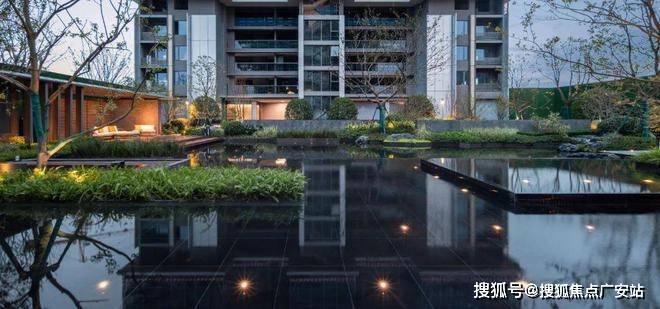 从园区入口到园区景观、建筑外立面、架空层、单元入户,再到样板房...几乎就是一场360度呈现的产品力「环幕大片」。因为南临一线东沙湖拥有得天独厚的水系自然资源,项目景观借鉴曼谷四季酒店设计灵感,在社区人行入口、中央景观、核心节点区域铺陈多处水景,将整个小区打造成一座“微缩的东沙湖”。