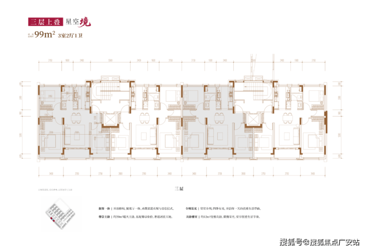 这种形态的产品目前市面上没竞品,而且未来也很难再有!再配合超大面宽、全明设计和普遍的阳台飘窗赠送,实现了“层层有附赠,户户有天地”的院墅感。