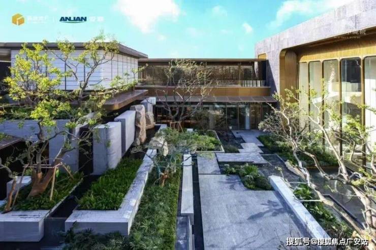 整个会所的500平米的立体庭院,打破传统沉闷感,巧妙营造出“空中花园、森林秘境、水岸客厅”三重沉浸场景,让业主仿佛置身于立体花园之中!