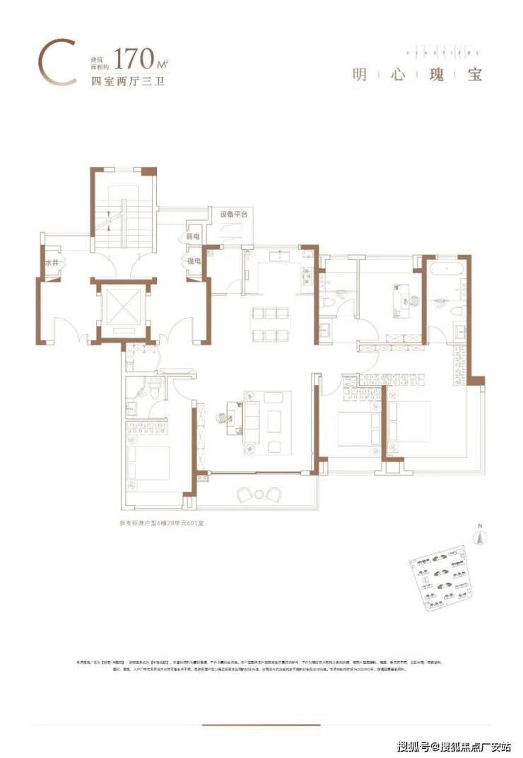 170㎡(四房两厅三卫,顶改):总价 1300–1520 万,主卧套房,独立电梯厅