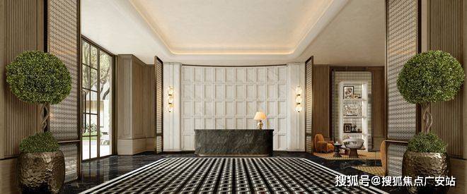 归家大堂层高约6米,融合传统门庭规制与现代酒店仪式,营造极具尊贵感的归家体验。