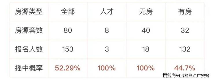 根据公示:项目80套房源,吸引了153组家庭登记,其中还有3组人才。