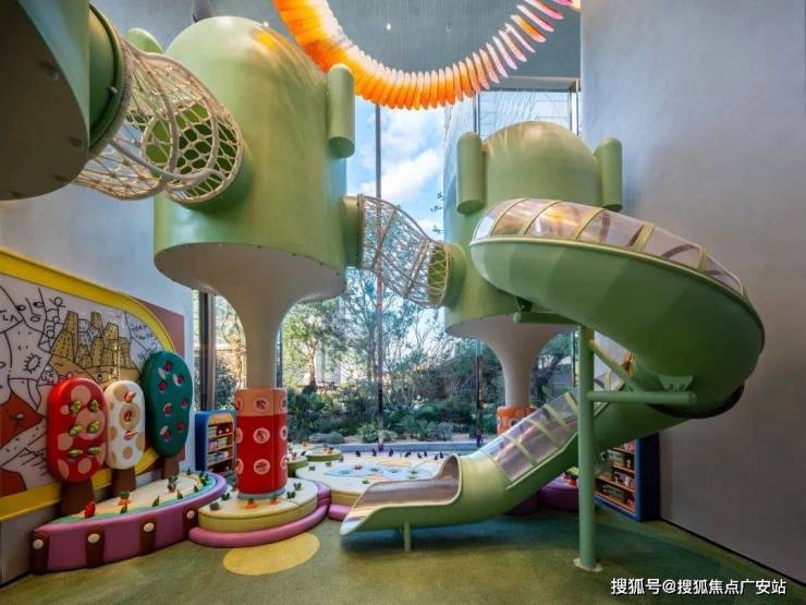 比如大一点孩子,可能更注重肢体协调能力、探索的趣味、空间的互动性和趣味性,那绿城就围绕这点,做了五个树屋、滑滑梯等。