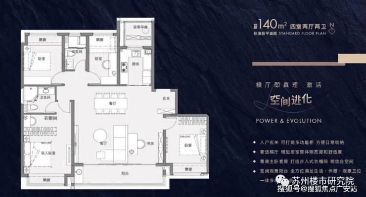 建筑面积约102-143㎡进阶户型带来全生命周期的舒居空间,全横厅设计诠释大尺度场景,阔境阳台、主卧套房设计,配备有独立卫生间和衣帽间,满足面面俱到的理想人居。