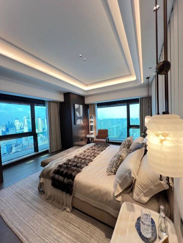 491.28㎡户型(11层):总价约8779万,单价178700元/㎡。梁志天大师亲自操刀室内设计,270度落地窗搭配约17米超级大阳台,最大化延伸采光面与瞰景视野。餐厨社交化、客厅多功能化、主卧小家化、次卧兴趣化的场景化设计,将艺术格调融入生活日常;地面局部点缀皇家蓝玻利维亚蓝奢石,卫生间铺陈静雅粽奢石,细节处雕琢高阶品位。
