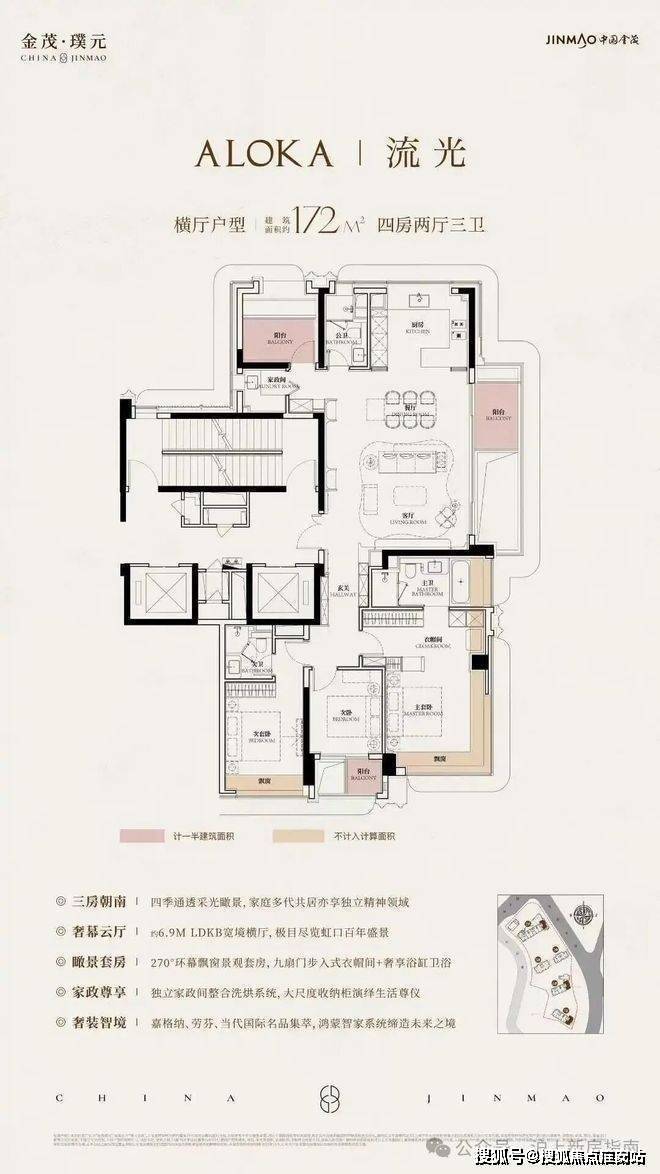 172㎡明星户型:南北通透+双套房+独立家政间,功能分区清晰,满足三代同堂或二胎家庭需求