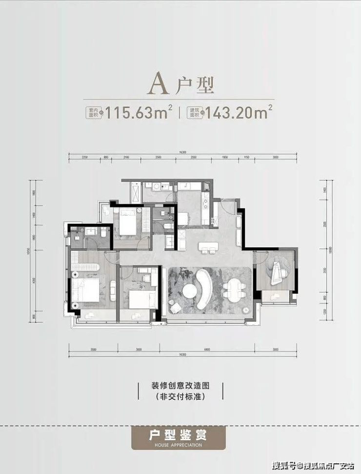 ❒ 套内115㎡ 建面143㎡ 四房双卫
