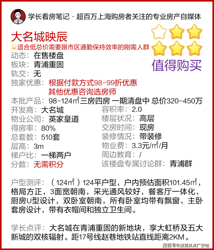 青浦重固全新盘「大名城·映辰」正在热销中!推出建面约98-124㎡三房四房,总价320-450万!