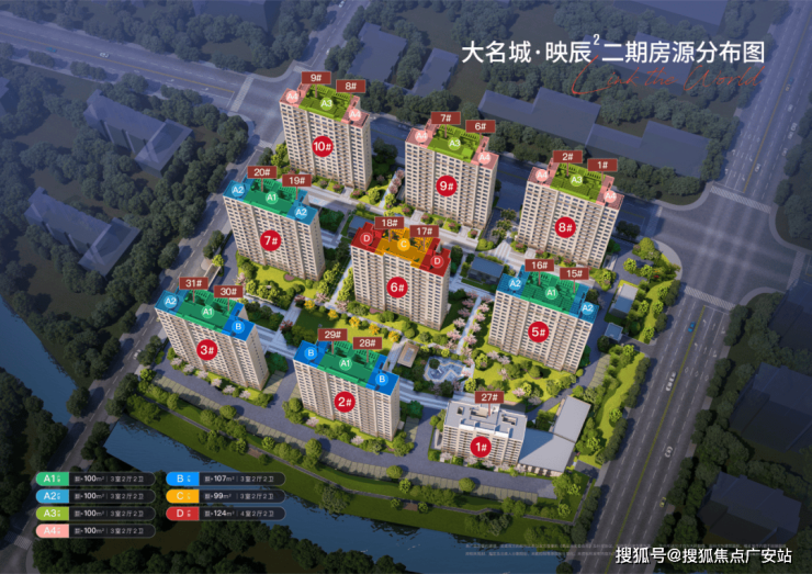 所以有这些硕果累累的经验在前,大名城映辰产品力会更强。 三面环河滨水住区, 整个小区三面环水,由7栋14层和6栋16层房源组成。