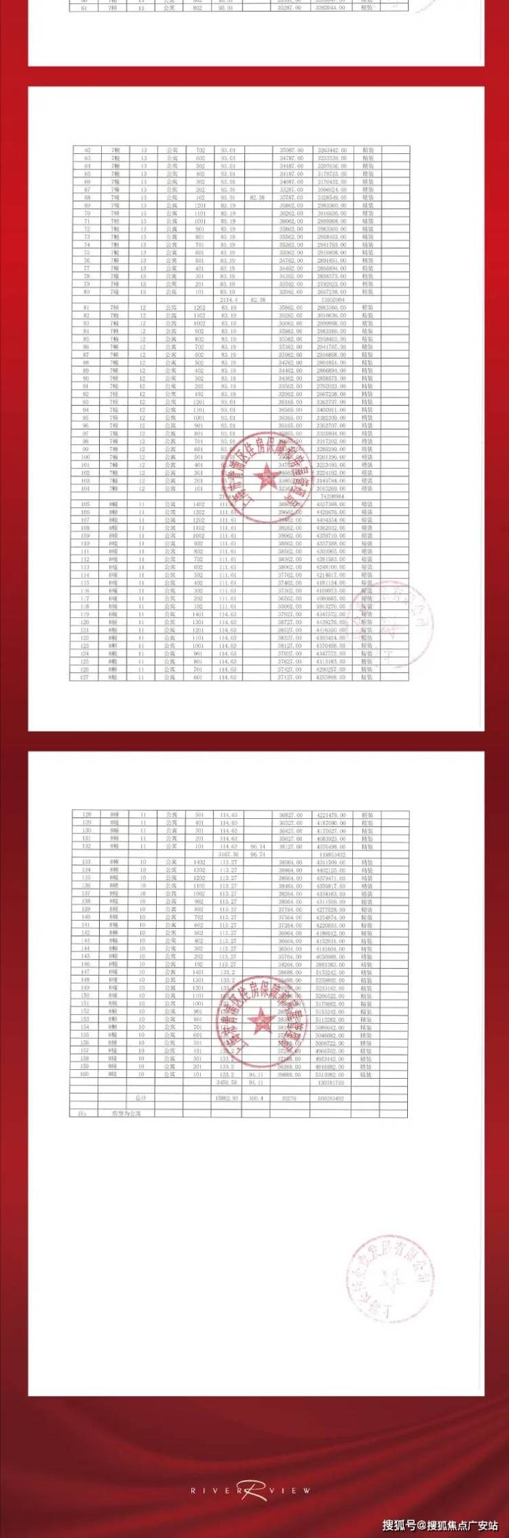 据悉项目开启认购,加推1、7、8#,一房一价表如下: