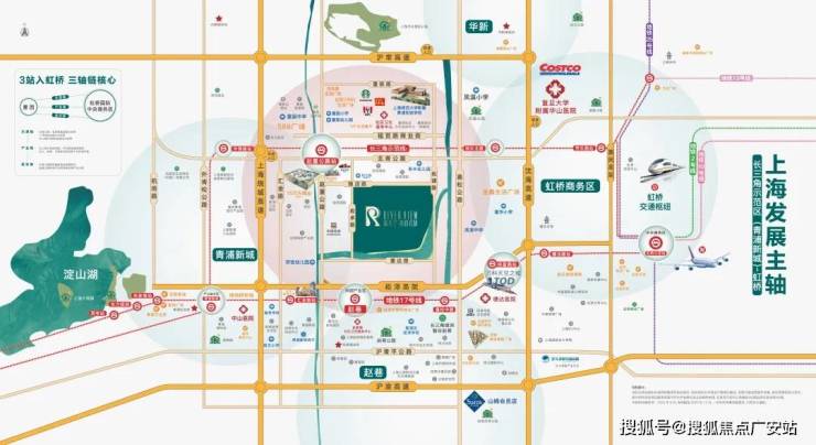 项目北侧直线约1公里就是示范区线赵重公路站(在建),向西可以直达青浦华为研发中心,向东2站即可到达前湾,3站直通虹桥枢纽!