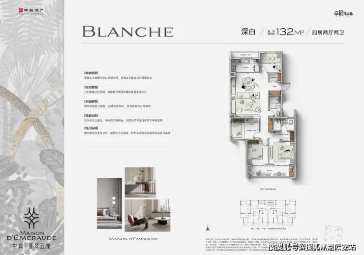 整个项目沿南北中轴对称,地块两侧的8栋楼为2T4的110/132户型,地块中间的4栋为2T2的156户型。