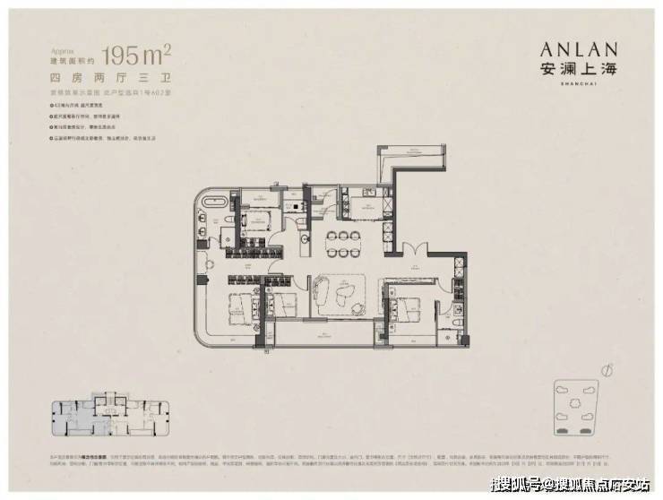 徐汇安澜上海官方电话:400-887-5663✔✔(官方售楼处预约看房热线)顶豪向来少谈“附赠”,但安澜上海直接把实得面积拉满.作为新规后首个三阳台顶豪户型,主卧阳台可满足男主人品茶、女主人瑜伽的闲情;北房间阳台让舒适四房的实用性再升级.