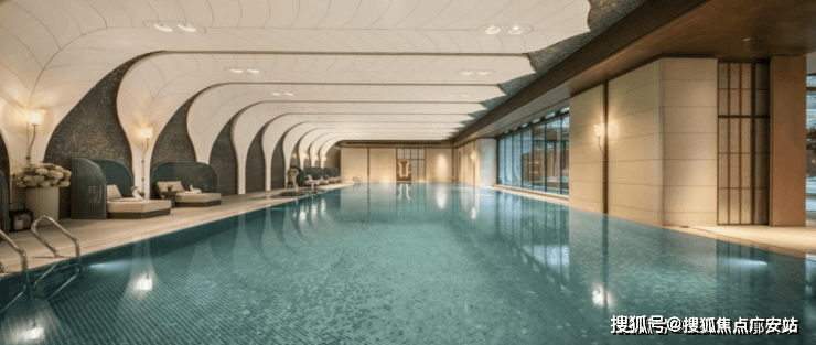 恒温泳池 : 第一,采用了景德镇烧制的陶瓷马赛克,独特的釉面色彩由 景德镇老师傅手工浇筑而成 ,充满人文艺术底蕴;第二,羽毛天花造型,由 600余件铝板 打造,表面采用了仿贝壳纹的艺术漆处理,带来松弛度假感;第三,不仅配置了约25m×10m的4道泳池,还采用了 奥运会同款空调除湿系统, 彰显高档品质细节!