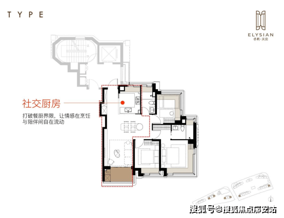 2.social厨房设计, 开放式厨房水槽区转向餐厅一侧,杜绝消极空间让室内轻松连贯,也让情感交流、家庭互动在无界限。