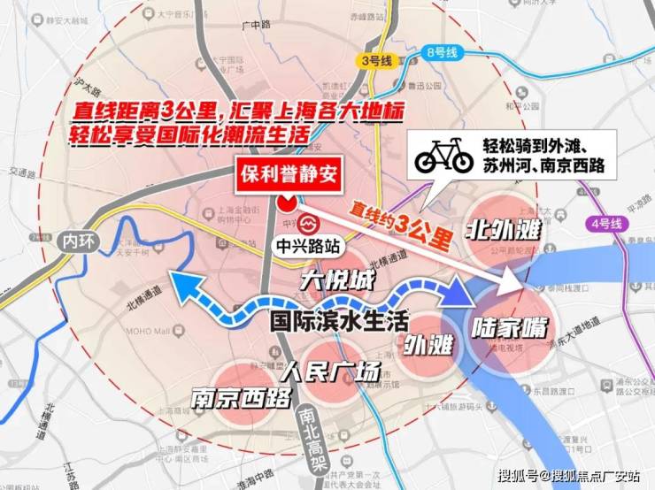 而项目到外滩和平饭店的直线距离正好是约3公里!妥妥的城心烫金地段!