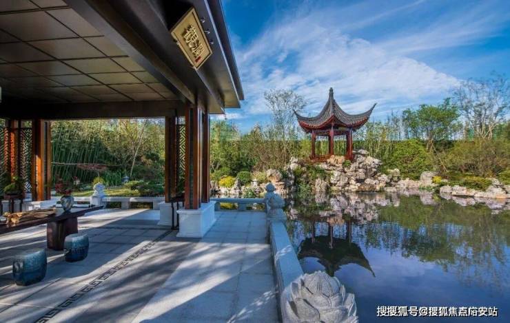 约3500㎡的中央景观区,融汇山池、六角亭、戏台、石舫,实现一步异景的院落诗意居境。