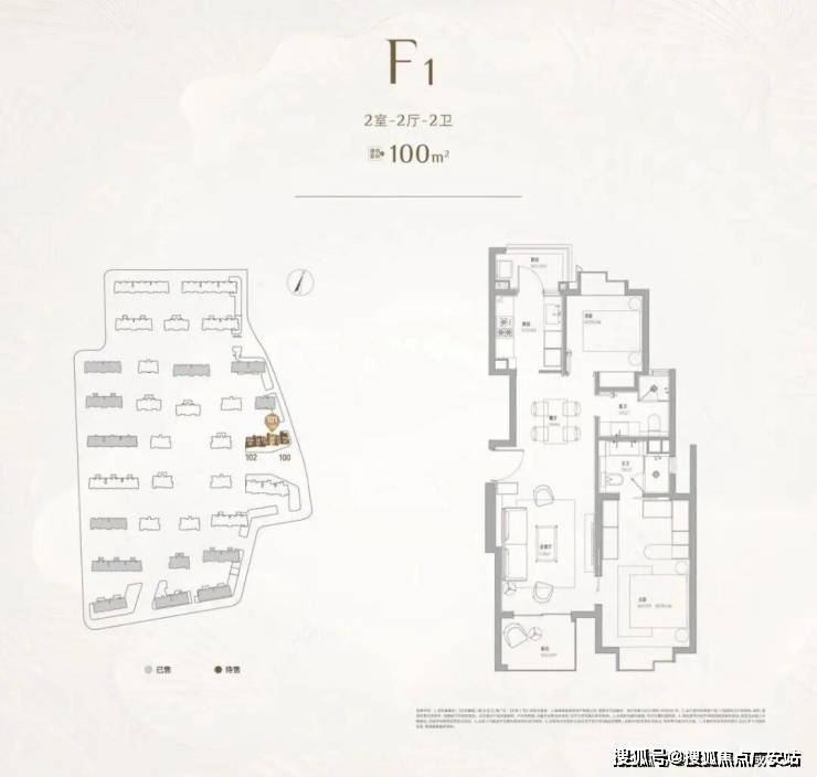 最后,来看户型图:建面约100㎡2房2卫,这是整个天安1号B区唯一一个总价在千万以内的产品,上车首选。
