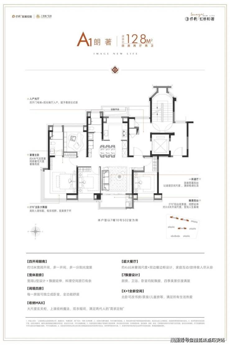 南向四大开间,精心铺排阔绰人生;X+1全龄空间,让家人各有其室,其乐融融;全屋7飘窗设计,赋予生活更多场景;主卧套房尊配衣帽间,时尚华服尽心收纳。