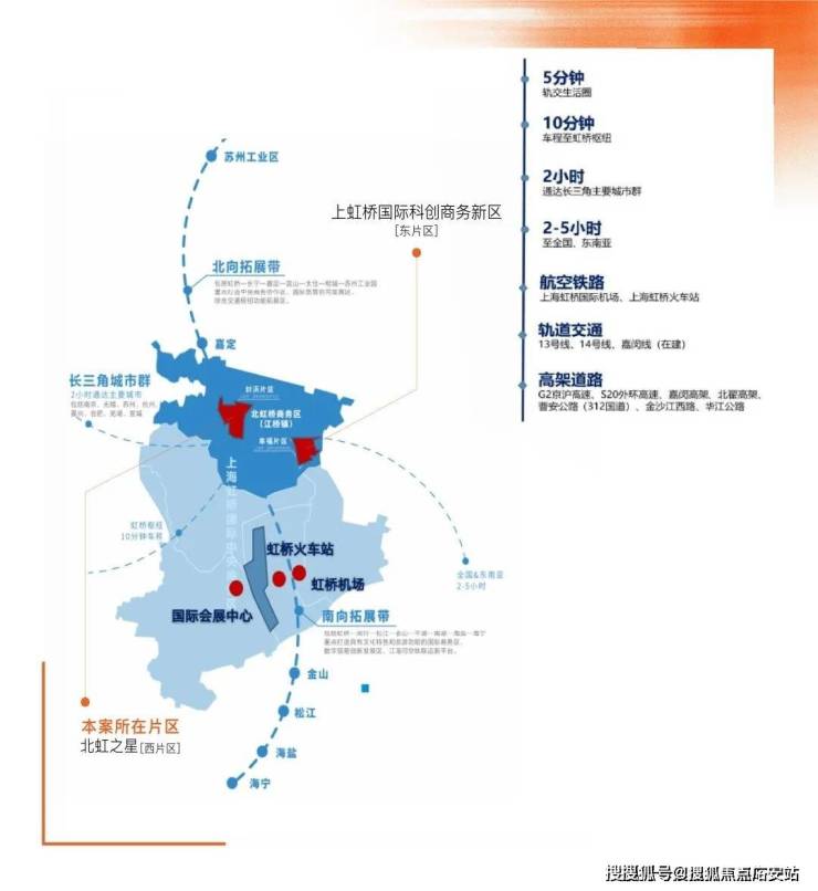 北虹桥作为虹桥国际开放枢纽的创新承载区,兼具“长三角,大虹桥”的双重区位优势,将承载虹桥国际中央商务区主导功能,成为链接辐射长三角的创新经济集聚区、中央商务配套区和高品质国际化社区。