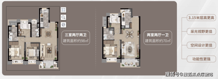 项目目前在售建面约72-88㎡2-3房,总价门槛较低。