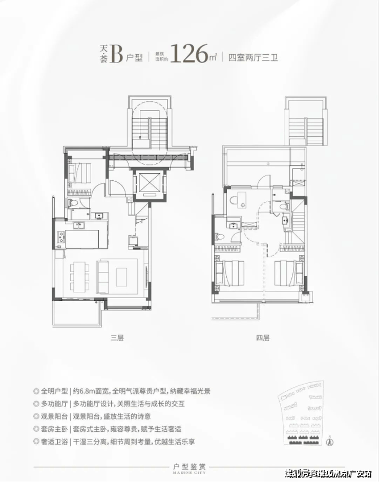 特别是这个E户型,建面仅约90㎡对于想住叠加但预算有限的购房者来说面宽约6.45米,上下动静分离带是个不错的选择!