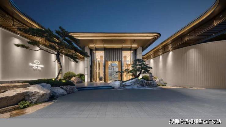 住低密的业主的脑海里都有对山水、天地的向往,如玺华院做到了,这还不止。宽约43米的恢弘门庭、两侧对立的黑松,都让其强大的气场又多了一抹诗意。