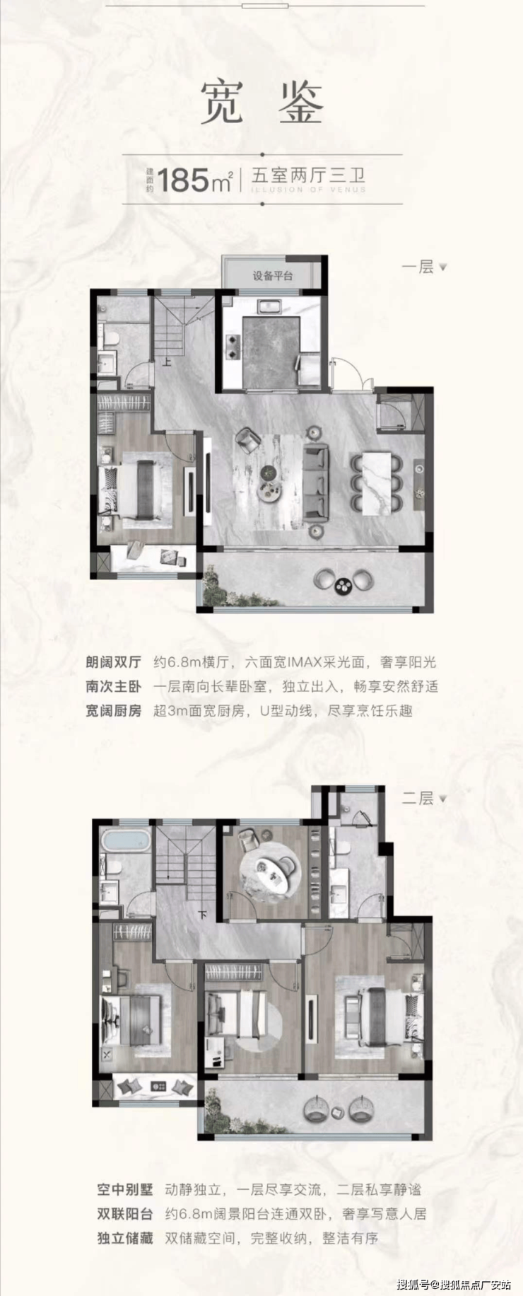 185㎡五室两厅三卫(叠墅):总价区间约500-515万元